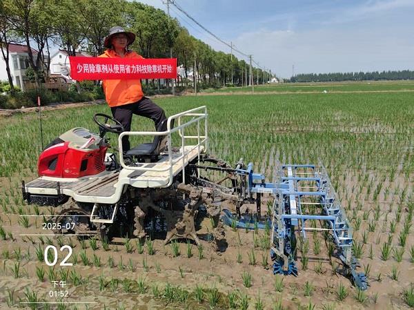 图:省力科技水田除草机在苏州张家港