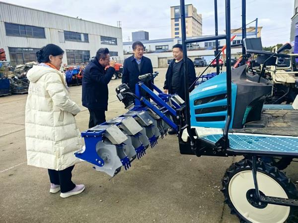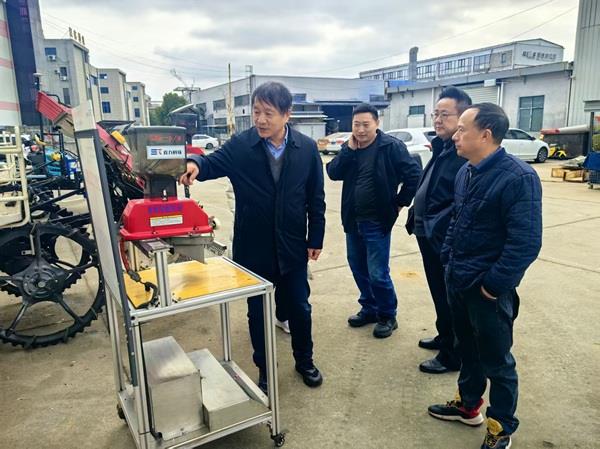 在生产现场,袁会珠研究员仔细观看了颗粒除草剂撒布机、省力科技除草开沟机(前置除草)、乘坐式式除草机(后置除草)等产品,并详细询问了产品结构、作业流程及应用效果。双方就水田绿色防控、农药减量增效、农机农艺融合等关键议题进行了深入交流。